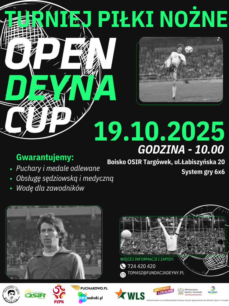 Fundacja Deyny zaprasza wszystkie amatorskie drużyny na wyjątkowy turniej piłki nożnej – Open Deyna Cup 2025! To niepowtarzalna okazja, aby zmierzyć się na boisku w sportowej rywalizacji, powalczyć o atrakcyjne nagrody finansowe i uczcić pamięć legendarnego Kazimierza Deyny. Turniej odbędzie się 19 października 2025 roku na obiekcie OSIR Targówek przy ul. Łabiszyńskiej 20 w Warszawie. W turnieju weźmie udzaił łącznie 32 drużyny!