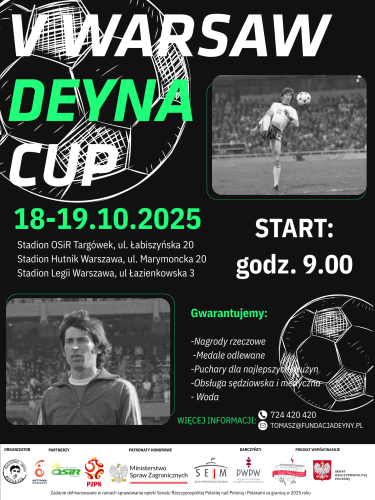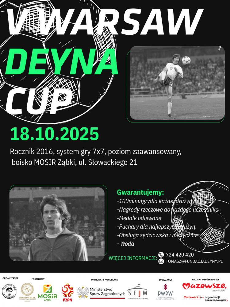 Już 18 i 19 października zapraszamy na międzynarodowy turniej piłki nożnej pod nazwą Warsaw Deyna Cup 2025!