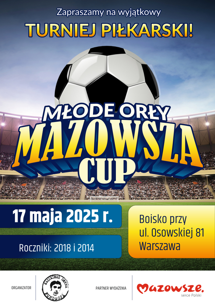 17 maja 2025 roku zapraszamy na wielkie piłkarskie święto! Młode Orły Mazowsza Cup to pierwsza edycja turnieju skierowanego do dzieci i młodzieży z całego Mazowsza.