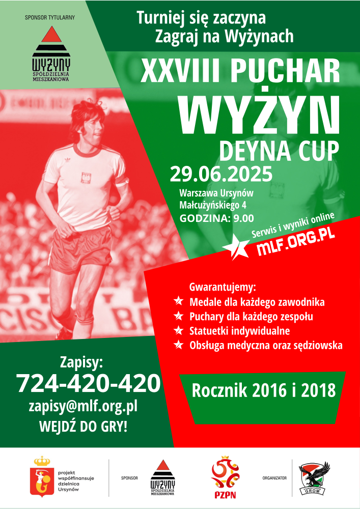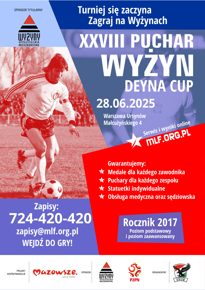 Już w najbliższą sobotę (28.06.2025) zapraszamy na 28 edycję Puchary Wyżyn Deyna CUP. Jak co roku turniej odbędzie się Warszawskim Ursynowie na boisku przy ul. Małcużyńskiego 4. Pierwsze mecze rozpoczną się o godzinie 9.00